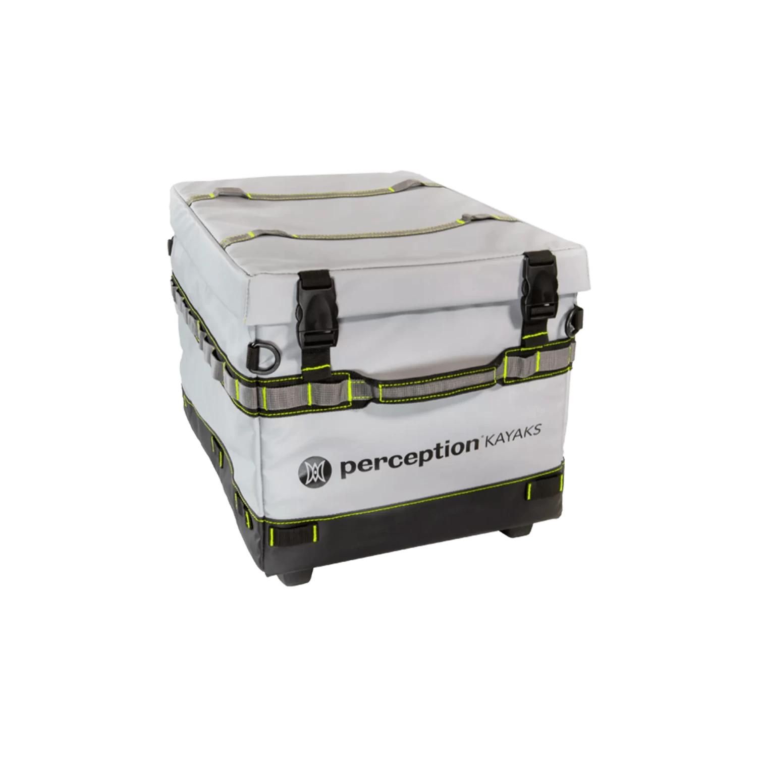 Designed for both fishing and general use, this innovative, versatile, and customizable kayak crate comes with an exclusive clip-in system for Perception Splash rod dolders and Splash pocket organizers (sold separately), making it easy to modify to your needs. The crate features strong webbing loops and D-rings for additional customization and securing options, ensuring maximum stability and convenience. Built to last, the Perception Splash kayak crate is made of ultra-durable slick waterproof materials with a canopy-style lid that sheds splash and rain for a dry interior while preventing fishing hook snags. The crate features a one-hand lid latch that securely locks your gear inside and a removable lid allowing easy access to your equipment. Plastic feet on the bottom of the crate elevate it away from wet or uneven surfaces, while ergonomic grab handles make it easy to carry. With an internal capacity to fit seven (7) 3700 Plano boxes or thirteen (13) 3600 Plano boxes, the Perception Splash kayak crate offers ample space to keep your gear organized. Weighing only 5.25 lb, the exterior dimensions of the crate are 13” W x 17” D x 12.5” H, while the internal dimensions are 12.25” W x 16” D x 11” H. The crate is compatible with most sit-on-top kayaks and is designed to fit in the stern tank well.